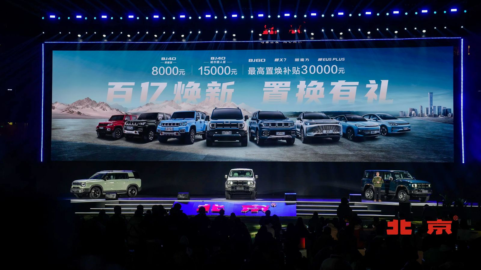 發布會最后,北京汽車還用豐厚的福利政策,為用戶帶來了兩大彩蛋,讓北京用戶的粉絲們驚喜連連。彩蛋之一,是3月18日正式上市的BJ40榮耀版,以13.98萬起的售價和更高的配置,打造 “專業越野性比價第一車”,讓越野更加親民。 彩蛋之二,是“百億煥新,置換有禮”。北京汽車聯合全國經銷商,拿出“百億資金”,推出大額度置換福利,BJ40榮耀版置換補貼8千元;全新BJ40城市獵人版置換補貼1.5萬元;BJ60、新X7、新魔方、新EU5PLUS全部可享至高3萬元置換補貼。以真金白銀,回饋喜愛北京品牌的廣大用戶。