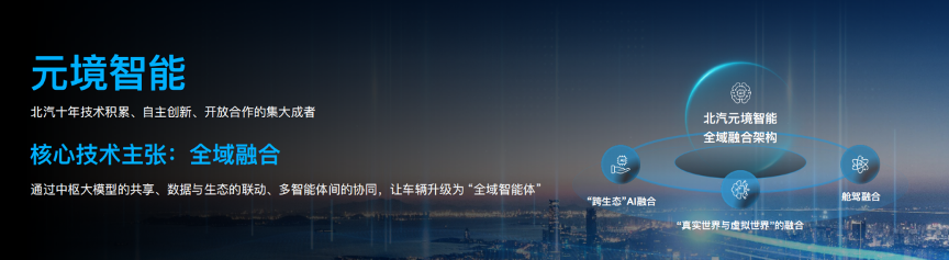 北汽研究總院副院長鄭新芬介紹,元境智能技術(shù)的核心主張為“全域融合”,通過中樞大模型的共享、數(shù)據(jù)與生態(tài)的聯(lián)動、多智能體間的協(xié)同,讓車輛升級為“全域智能體”,打破“域”的邊界,實現(xiàn)全域的融合與進化。